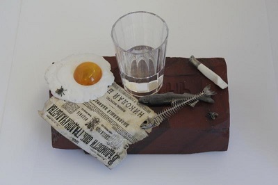 набор": яичница, обрывок газеты, граненый стакан с недопитой водкой,