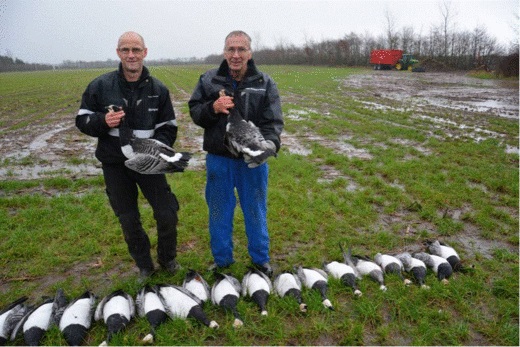 "Я думал, что это черепицу сдувает во время шторма, но когда облака рассеялись, и шторм ушел, мы вышли на улицу. То, что мы увидели, было казарками. Мертвые казарки", говорит Брайан Ростгорд Андерсен. Фермер и его менеджер Фрэнк Берндт нашли в радиусе от 150 до 200 метров 24 погибших казарки. Некоторые из них лежали на крыше фермы, а некоторые даже пробили черепицу.